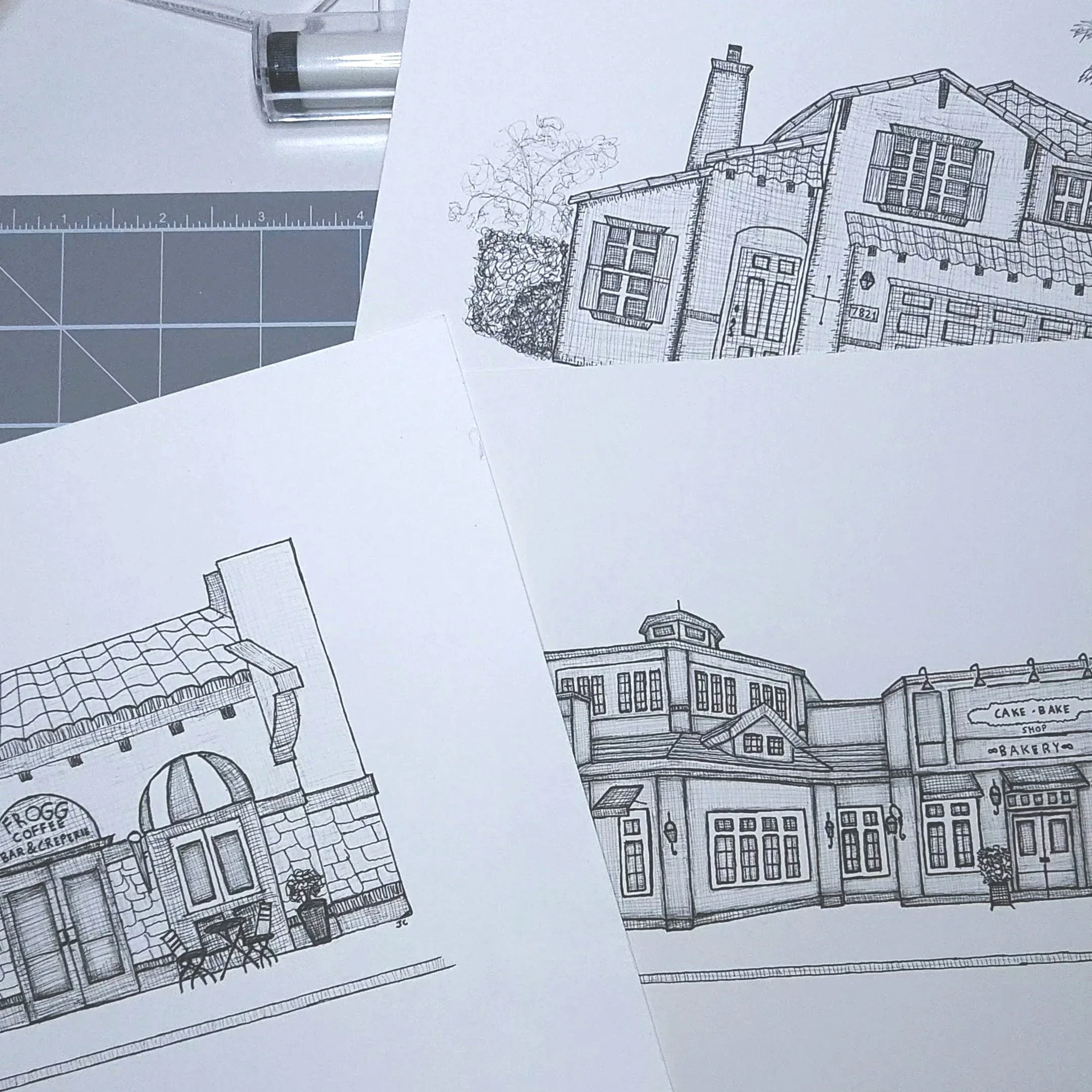 Illustrations are drawn by hand in black ink on professional acid-free thick paper using fine-point ink pens. There is an additional fee if you’d like to add color.